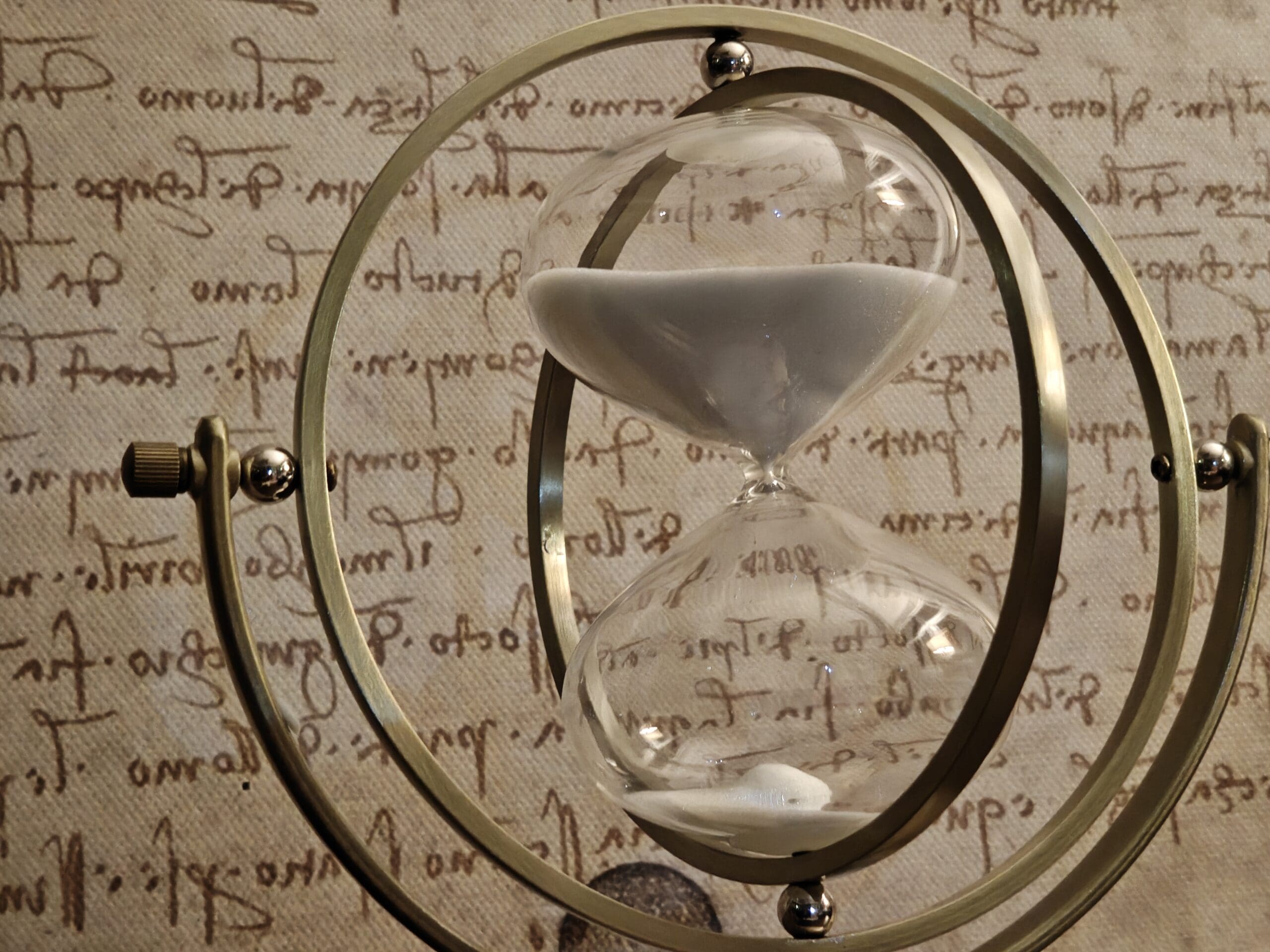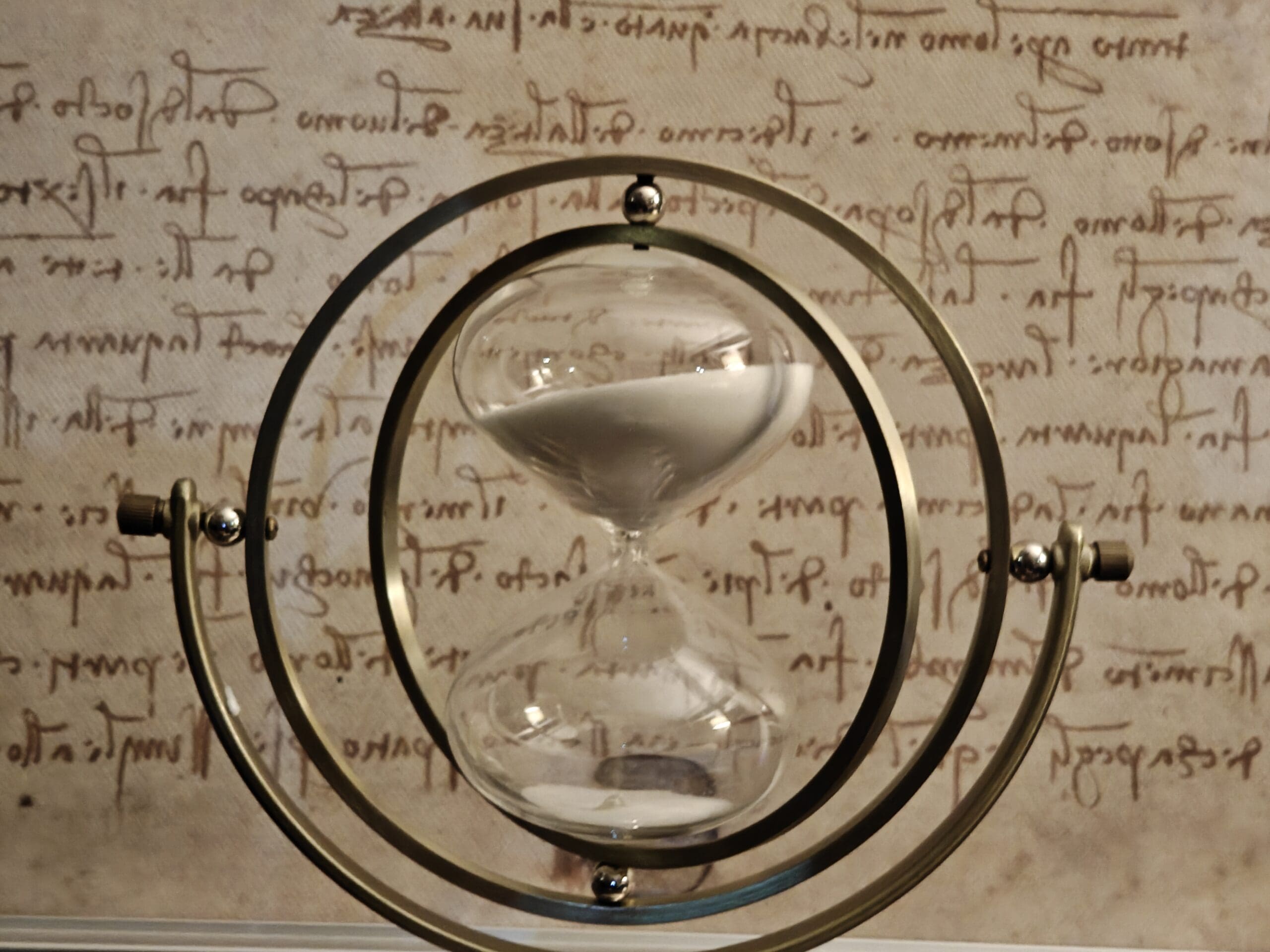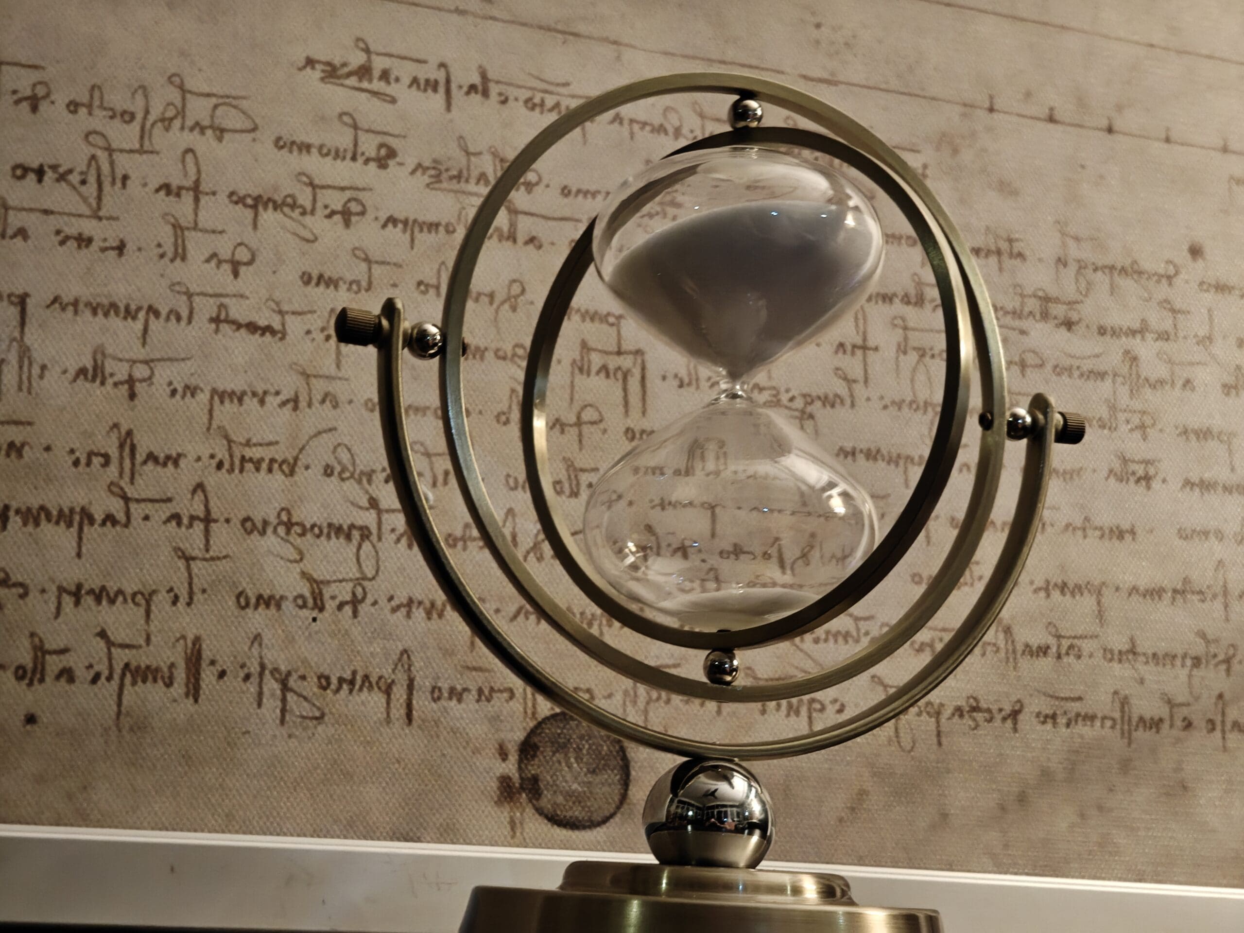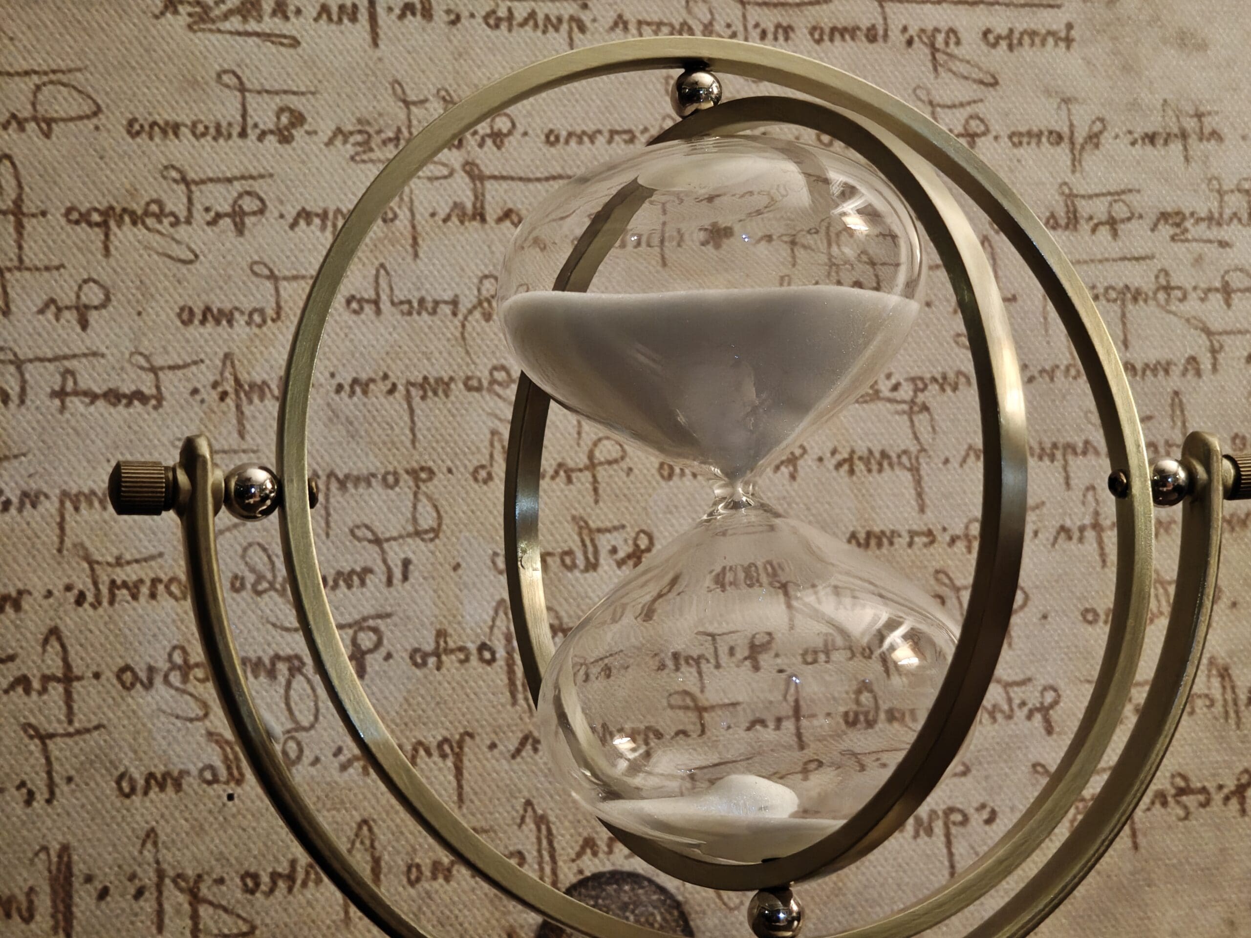 We turned to the ancient armillary sphere—a symbol of motion, recursion, and cosmic alignment—and reimagined it as a hand-held tool for personal orientation. Each component is made from solid brass, hand-assembled to create a kinetic structure that rotates on multiple axes. The hourglass at its core is calibrated to mark exactly 30 minutes, using fine-grain white sand for smooth, consistent flow.