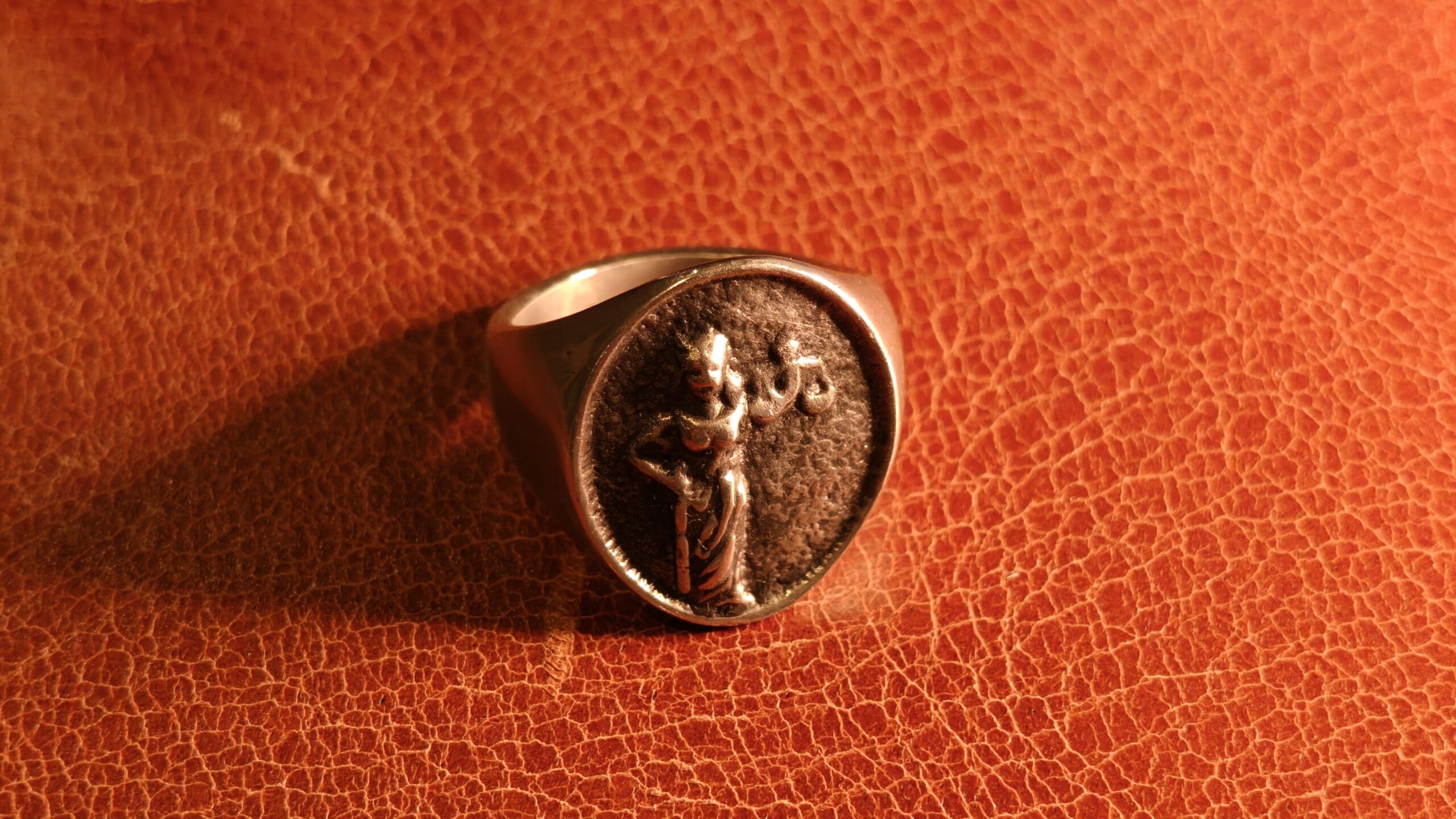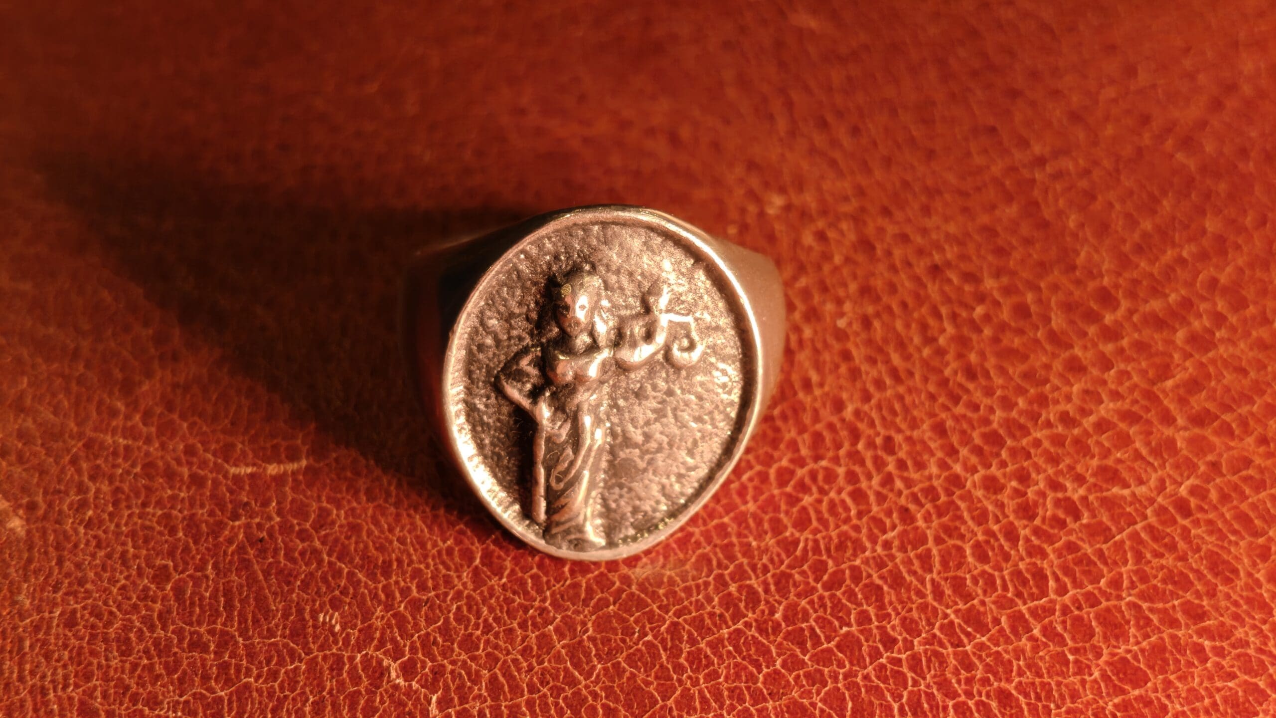 At its face is the engraved figure holding scales, a timeless symbol of equilibrium. It invites you to carry balance with you—whether in thought, in choice, or in daily action. But it is just as much a philosophical object as it is a ring. It rests on your hand not as decoration, but as reminder: that steadiness is not found once, but returned to, again and again.