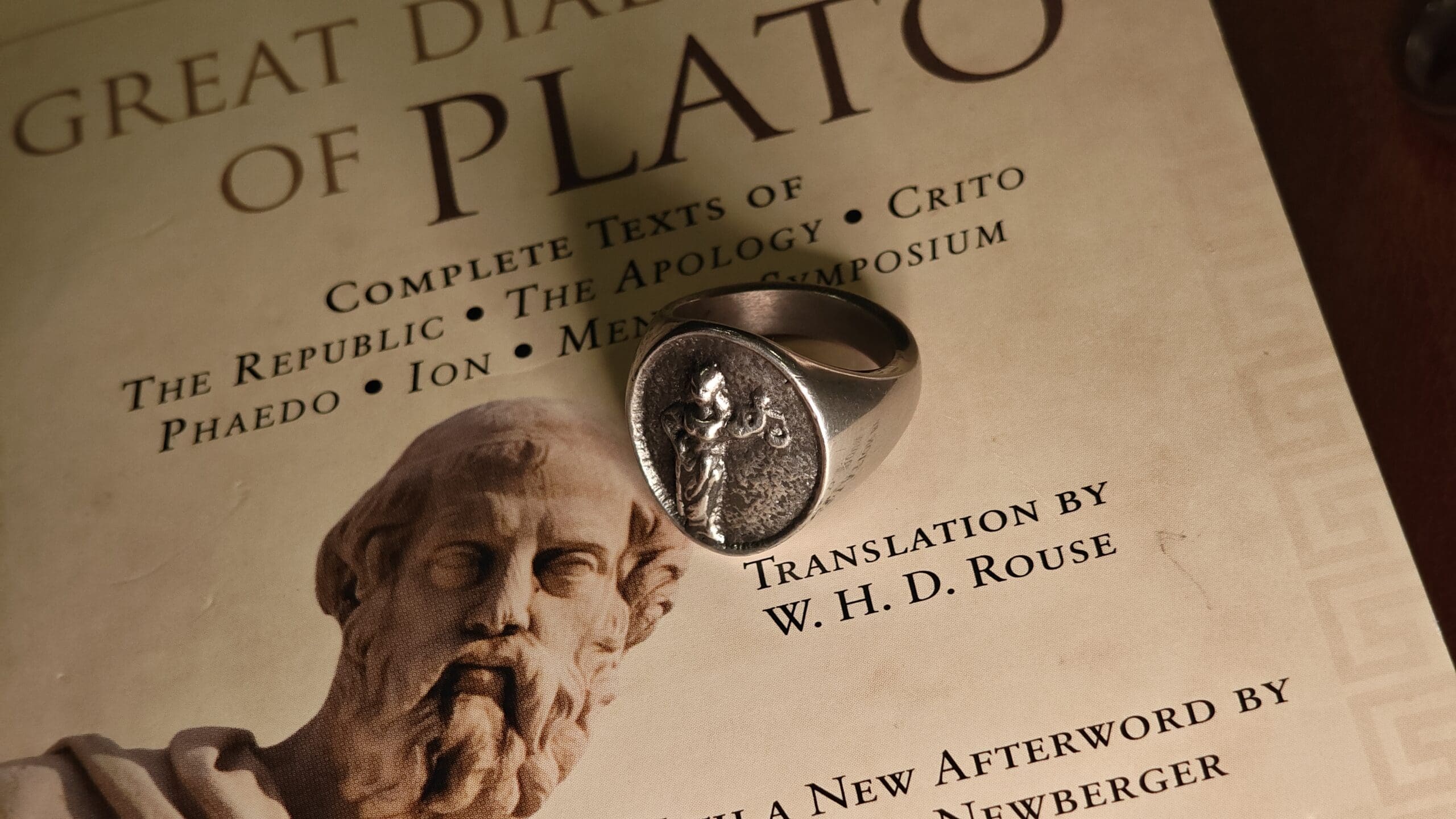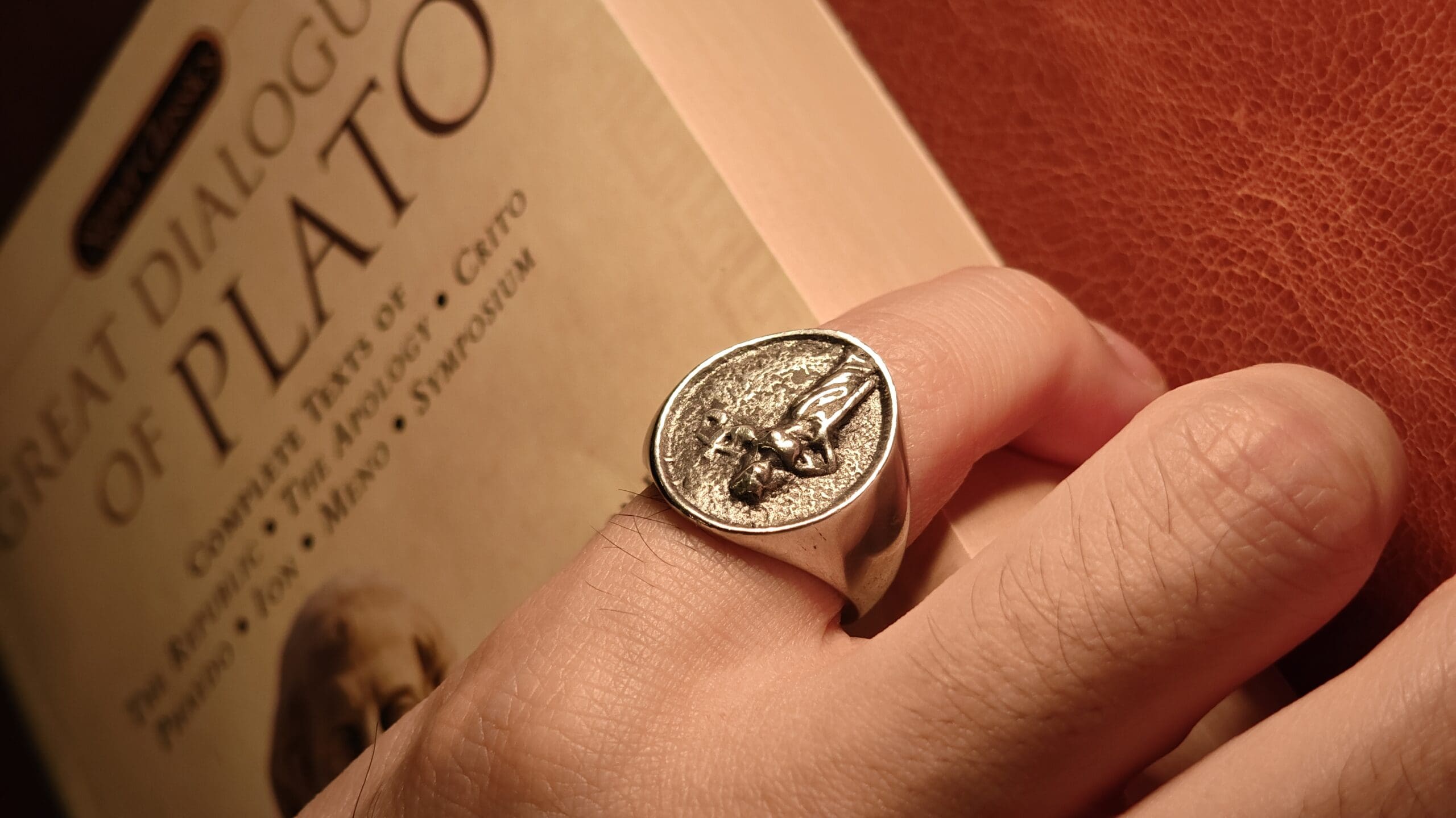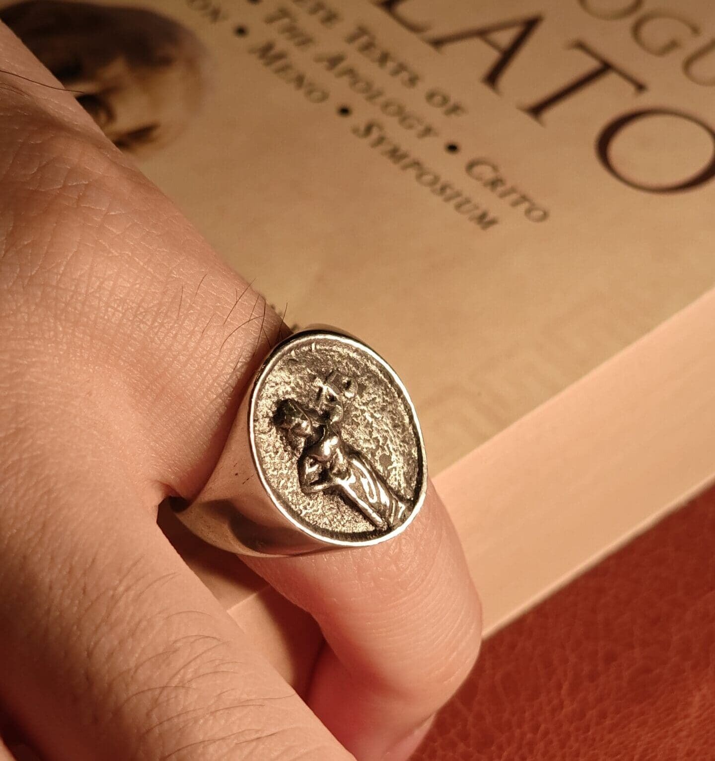 Inspired by Plato’s Republic, where the harmony of the soul is the essence of virtue, this is a modern ring that captures that philosophy.
